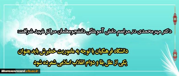 دکتر مهرمحمدی در مراسم دانش آموختگی دانشجومعلمان مرکز شهید شرافت: دانشگاه فرهنگیان با توجه به ماموریت خطیرش باید بعنوان یکی از علل بقا و دوام انقلاب اسلامی شمرده شود