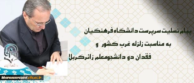 پیام تسلیت سرپرست دانشگاه فرهنگیان درپی زلزله غرب کشور و فقدان دو دانشجومعلم زائرکربلا