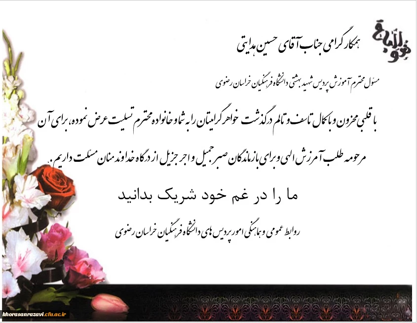 عرض تسلیت به همکار گرامی جناب آقای حسین هدایتی