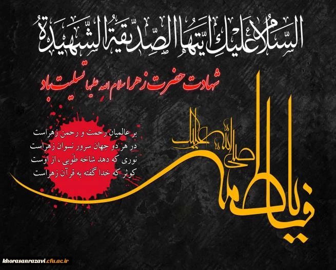 فرا رسیدن شهادت صدیقه کبرى، فاطمه زهرا، پاره تن پیامبرصلى الله علیه وآله همسر امیر مؤمنان على بن أبى طالب، و مادر امامان معصوم را به تمامى شیفتگان و دوستداران خاتم پیامبران و اهل بیت پاک و مطهر آن حضرت تسلیت باد