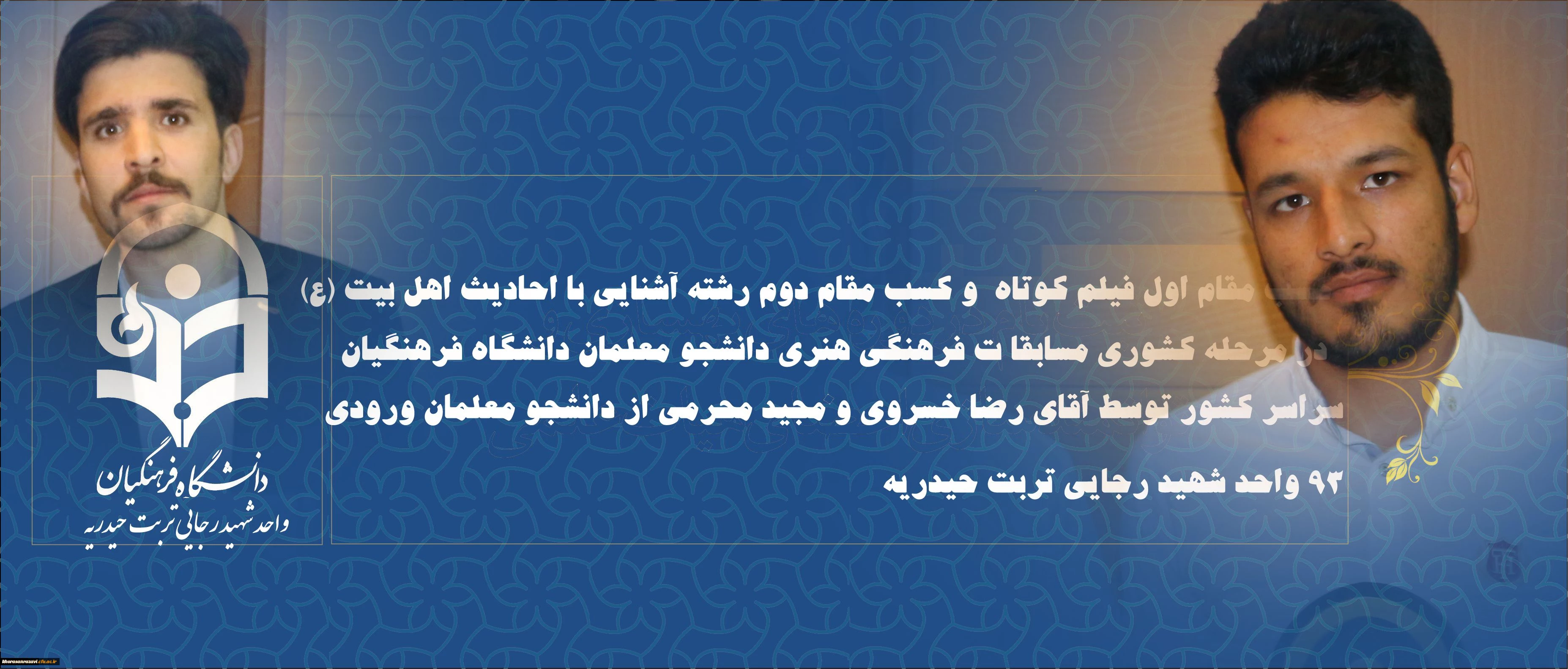 کسب مقام اول فیلم کوتاه و کسب مقام دوم رشته آشنایی با احادیث اهل بیت (ع) در مرحله کشوری