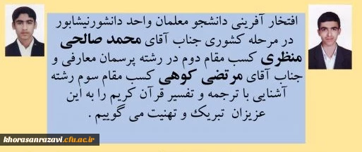 امتیاز دهید : افتخار آفرینی دانشجو معلمان دانشگاه فرهنگیان واحد دانشور نیشابور سهشنبه 9 مرداد 1397 ساعت 7:30