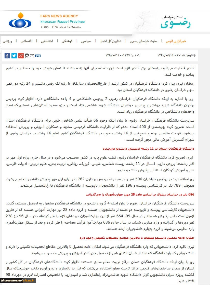 بازتاب نشست خبری مشترک دانشگاه فرهنگیان و اداره کل آموزش و پرورش خراسان رضوی