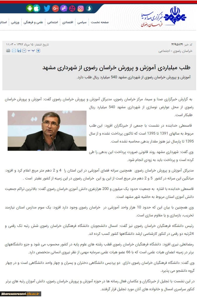 بازتاب نشست خبری مشترک دانشگاه فرهنگیان و اداره کل آموزش و پرورش خراسان رضوی