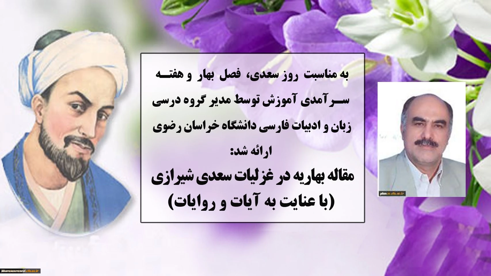 مقاله مدیر گروه آموزشی زبان و ادبیات فارسی دانشگاه فرهنگیان خراسان رضوی به مناسبت هفته سرآمدی آموزش، روز بزرگداشت سعدی و فصل بهار