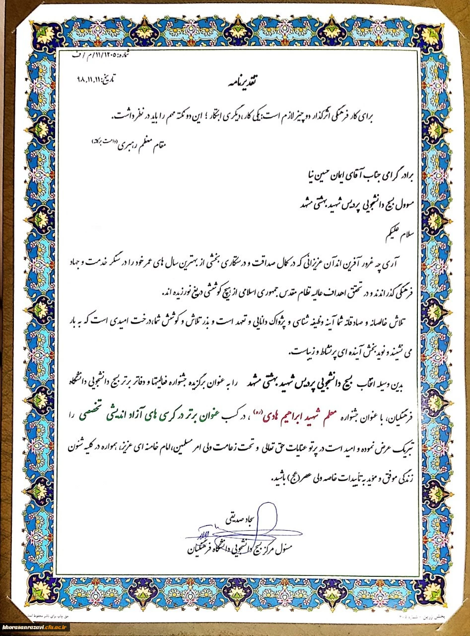 کسب عنوان برتر در برگزاری کرسی های آزاداندیشی توسط بسیج دانشجویی پردیس شهید بهشتی خراسان رضوی 2
