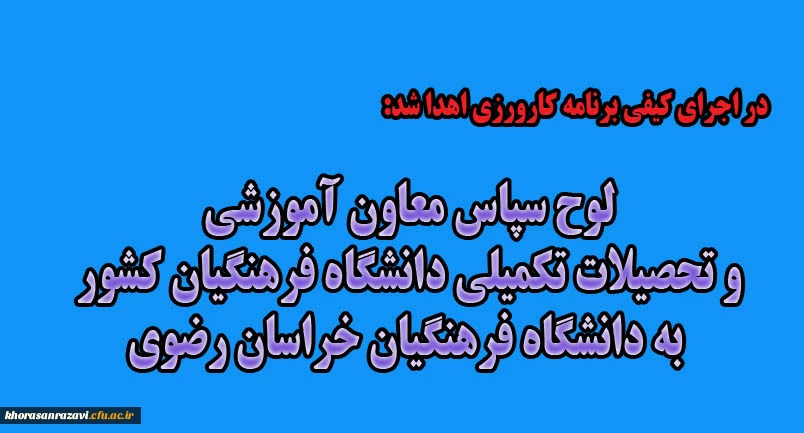 لوح سپاس معاون آموزشی و تحصیلات تکمیلی دانشگاه فرهنگیان کشور به دانشگاه فرهنگیان خراسان رضوی