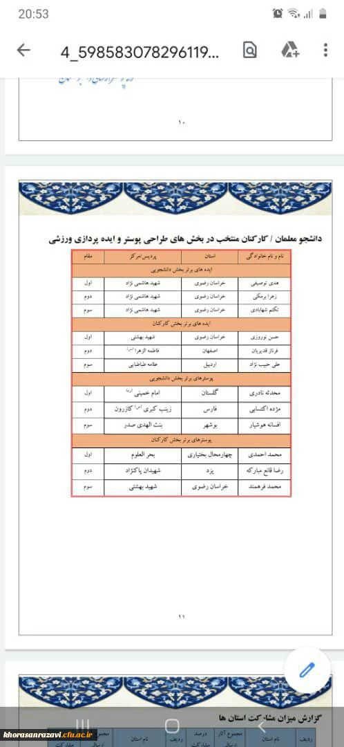 کسب مقام اول تا سوم جشنواره کشوری مسابقه ی ایده ورزش در خانه درایام کرونا 2