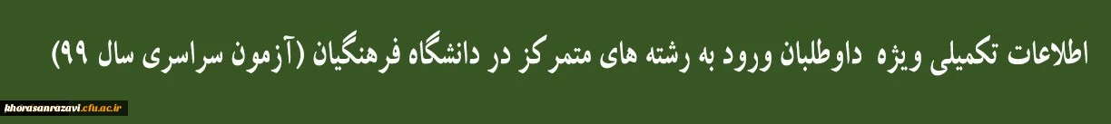 داوطلبان ورود به رشته های متمرکز در دانشگاه فرهنگیان و دانشگاه تربیت دبیر شهید رجایی (آزمون سراسری سال 99)
