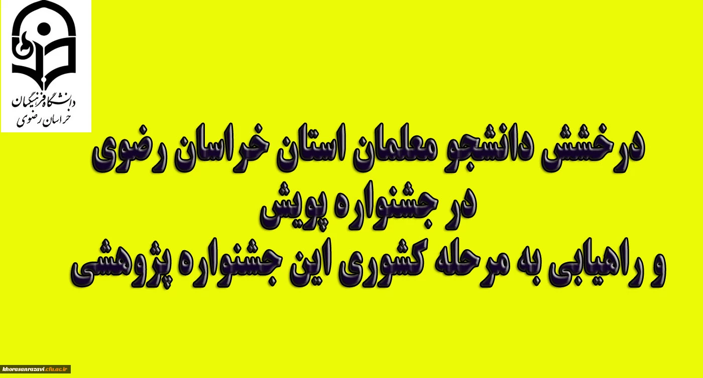 درخشش دانشجو معلمان استان خراسان رضوی در جشنواره پویش و راهیابی به مرحله کشوری این جشنواره پژوهشی