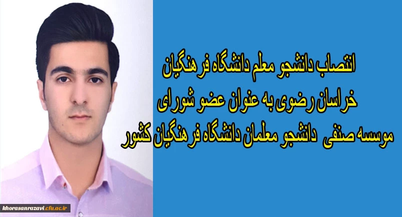 انتصاب دانشجو معلم دانشگاه فرهنگیان خراسان رضوی به عنوان عضو شورای موسسه صنفی دانشجو معلمان دانشگاه فرهنگیان کشور