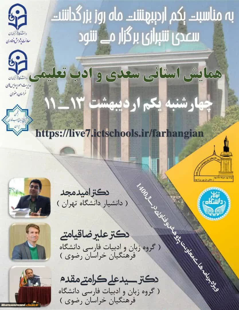 امتیاز دهید : آغاز اردیبهشت با شکرخند سعدی شیرازی و روز زمین پاک گرامی باد 2 چهارشنبه 1 اردیبهشت 1400 ساعت 7:59