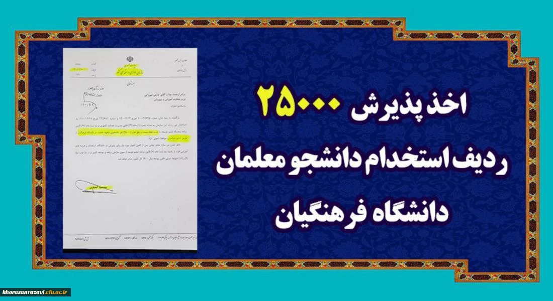 اعلام موافقت با جذب 25000 نفر دانشجوی متعهد خدمت در دانشگاه فرهنگیان از طریق کنکور سراسری 2