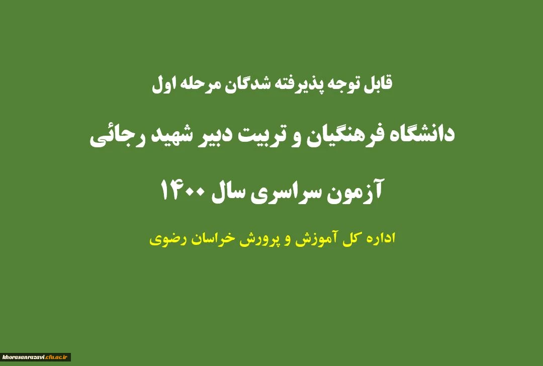 قابل توجه پذیرفته شدگان نهایی رشته های متمرکز در دانشگاه فرهنگیان و دانشگاه تربیت دبیر شهیدرجایی آزمون سراسری