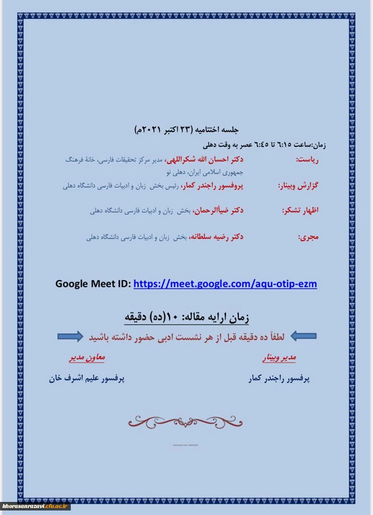 ارائه مقاله پژوهشی عضو هیات علمی دانشگاه فرهنگیان خراسان رضوی در همایش بین المللی بخش زبان و ادبیات فارسی دانشگاه دهلی 2