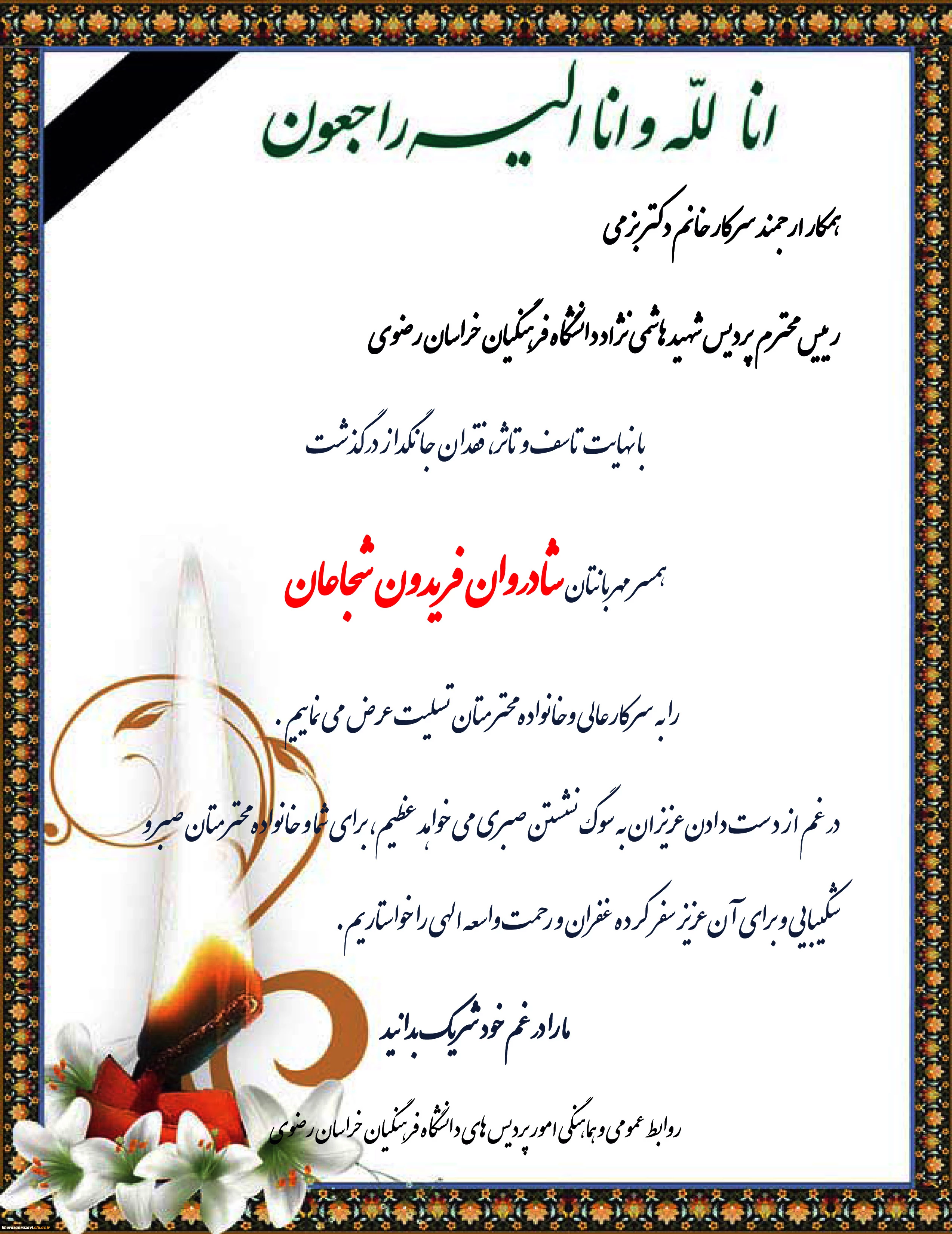عرض تسلیت به همکار ارجمند سرکار خانم دکتر بزمی 2