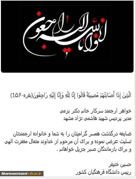 عرض تسلیت به همکار ارجمند سرکار خانم دکتر بزمی 3