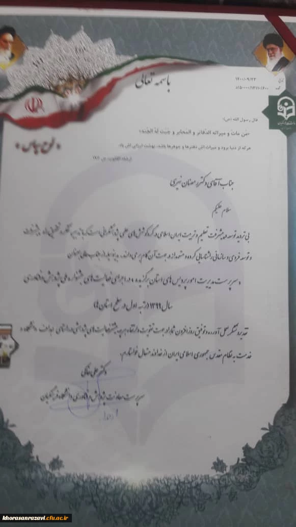 کسب مقام نخست کشوری در حوزه پژوهشی توسط دانشگاه فرهنگیان استان خراسان رضوی 3