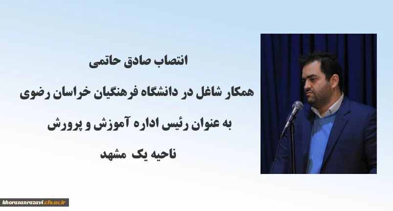 انتصاب همکار شاغل در دانشگاه فرهنگیان خراسان رضوی به عنوان رئیس اداره آموزش و پرورش ناحیه یک مشهد