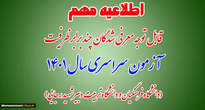 قابل توجه معرفی شدگان چند برابر ظرفیت آزمون سراسری سال 1401 (دانشگاه فرهنگیان و دانشگاه تربیت دبیر شهید رجایی)