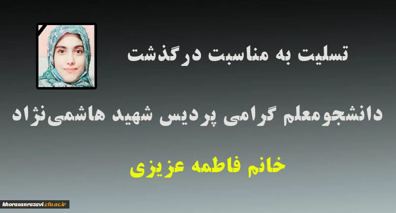 امتیاز دهید : تسلیت به مناسبت درگذشت دانشجومعلم گرامی، خانم فاطمه عزیزی یکشنبه 20 شهریور 1401 ساعت 9:15