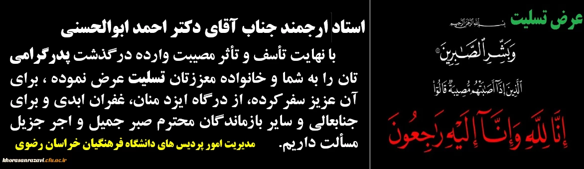 عرض تسلیت به استاد ارجمند جناب آقای دکتر احمد ابوالحسنی به مناسبت فوت پدر ایشان 2