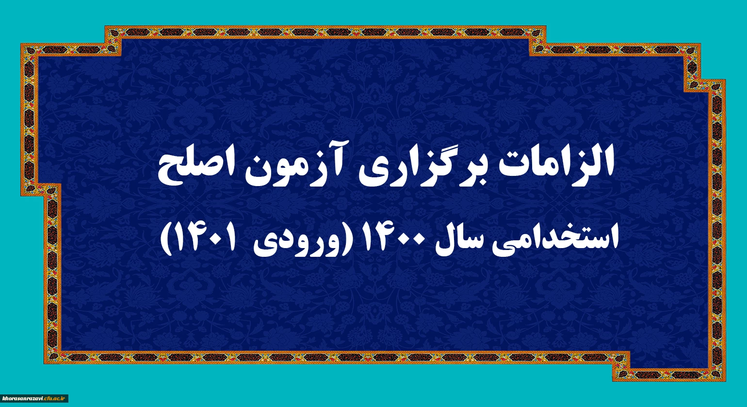 امتیاز دهید : الزامات برگزاری آزمون اصلح استخدامی سال 1400 (ورودی 1401) 2 سهشنبه 2 اسفند 1401 ساعت 8:49