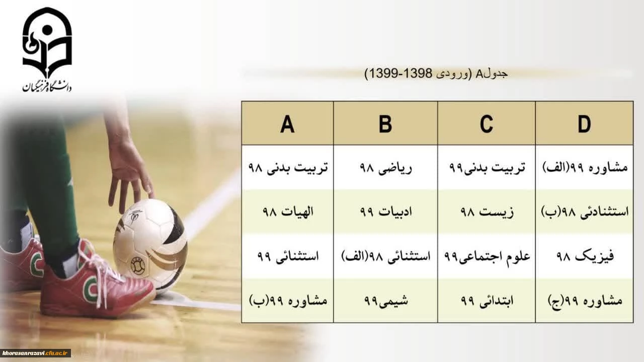 امتیاز دهید : تیمهای شرکت کننده در لیگ فوتسال دانشجویی رقبای خود را شناختند 2 یکشنبه 14 اسفند 1401 ساعت 1:03