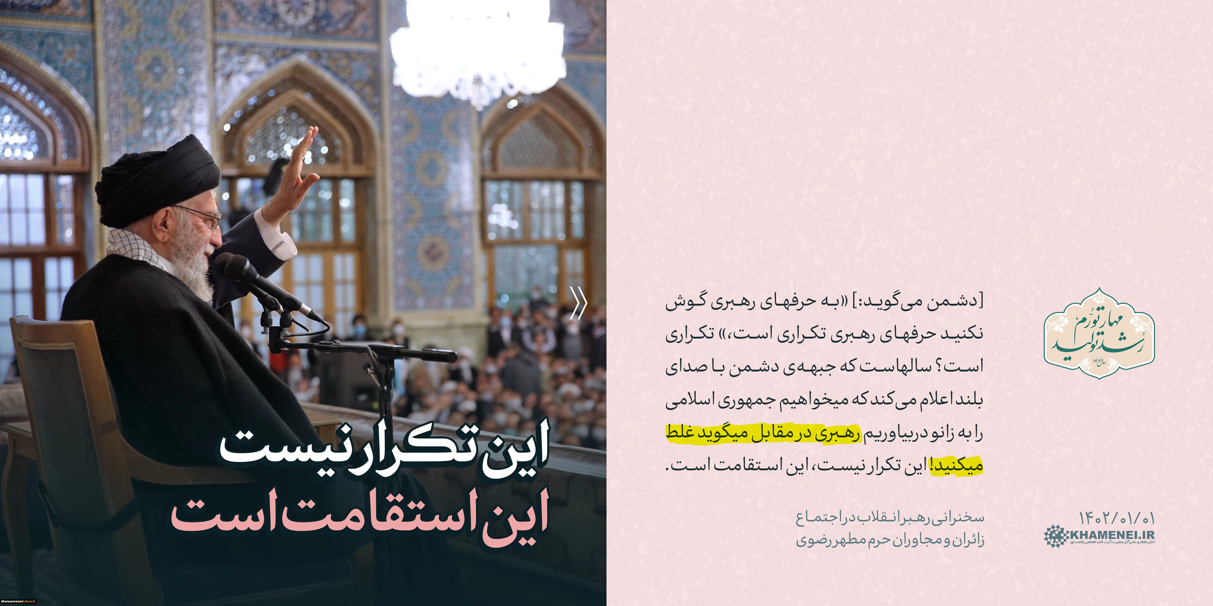 امتیاز دهید : گزیده2 بیانات رهبر معظم انقلاب در اجتماع مردم مشهد - نوروز 1402 چهارشنبه 9 فروردین 1402 ساعت 21:40