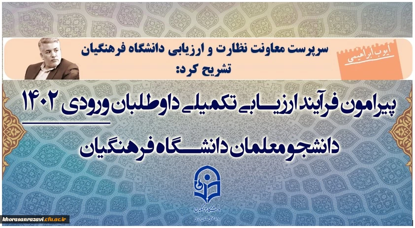 امتیاز دهید : فرآیند ارزیابی تکمیلی داوطلبان ورودی 1402 دانشگاه فرهنگیان 2 شنبه 18 شهریور 1402 ساعت 6:30