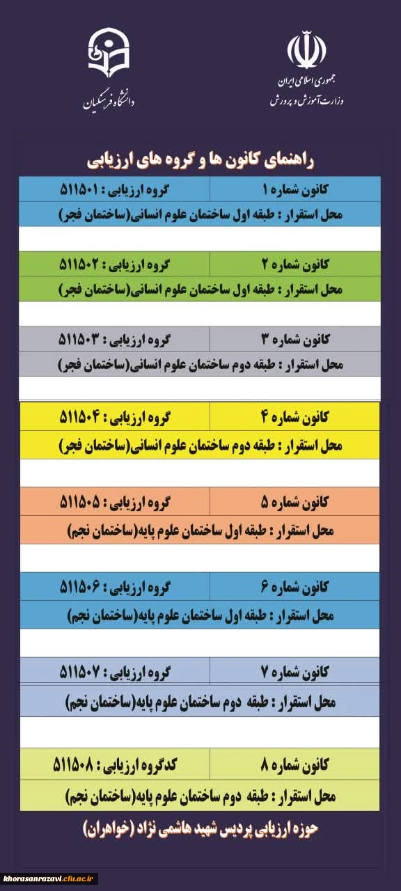 امتیاز دهید : راهنمای کانون ها و گروه های ارزیابی پردیس شهید هاشمی نژاد مشهد یکشنبه 19 شهریور 1402 ساعت 0:05