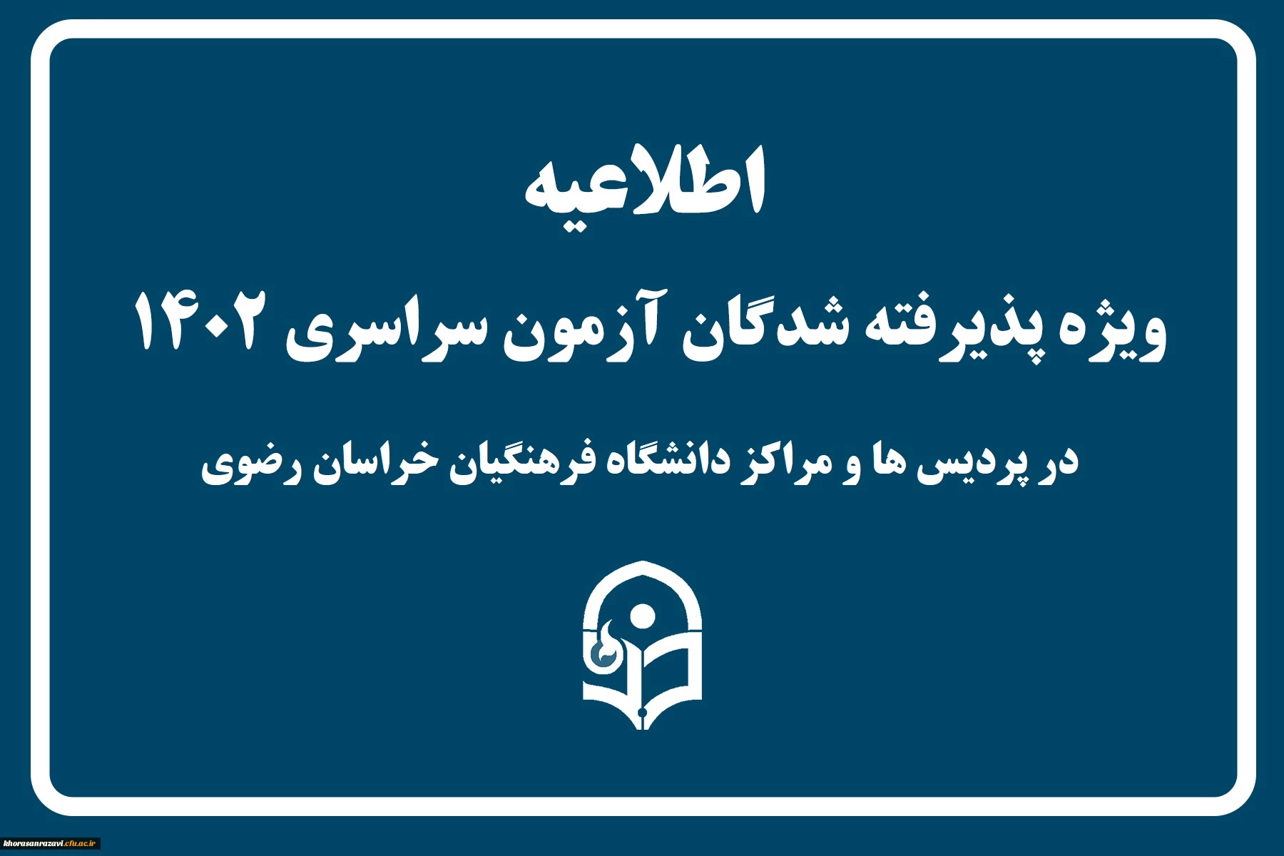 ویژه پذیرفته شدگان کنکور سراسری در پردیس ها و مراکر دانشگاه فرهنگیان خراسان رضوی 2