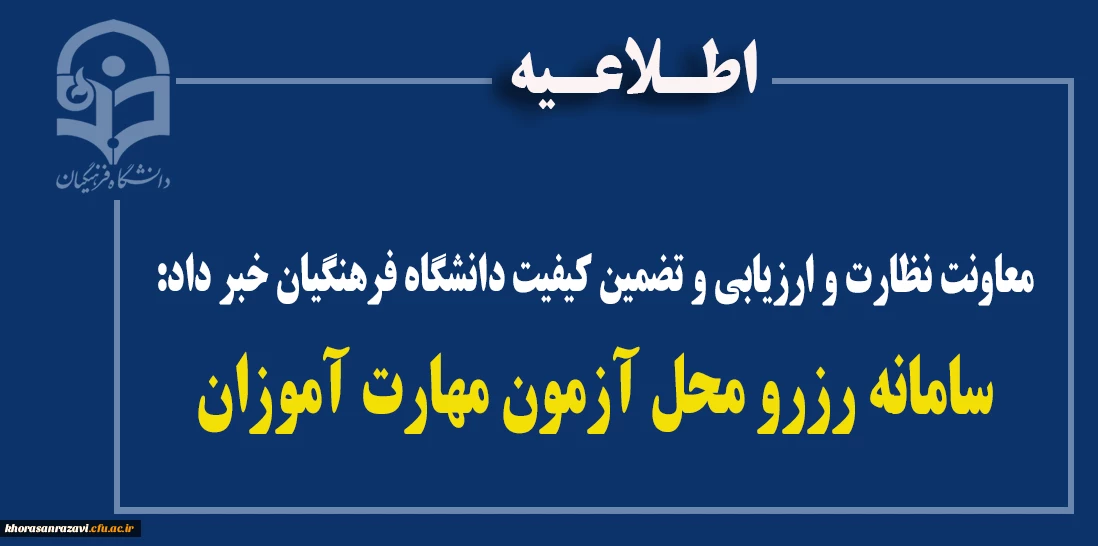 معاونت نظارت و ارزیابی و تضمین کیفیت دانشگاه فرهنگیان خبر داد: سامانه رزرو محل آزمون مهارت آموزان 2