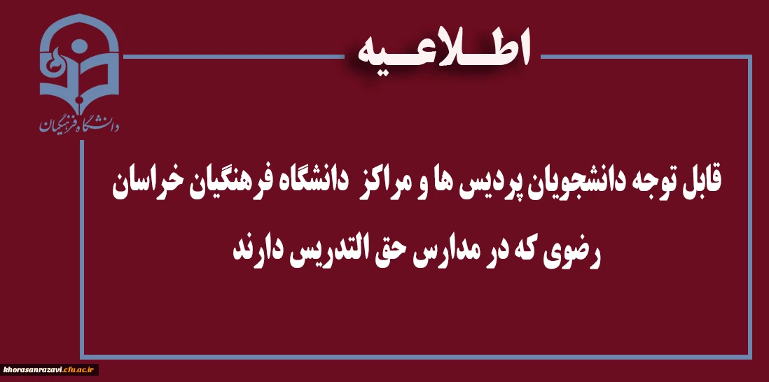 قابل توجه دانشجویان پردیس ها و مراکز دانشگاه فرهنگیان خراسان رضوی که در مدارس حق التدریس دارند 2