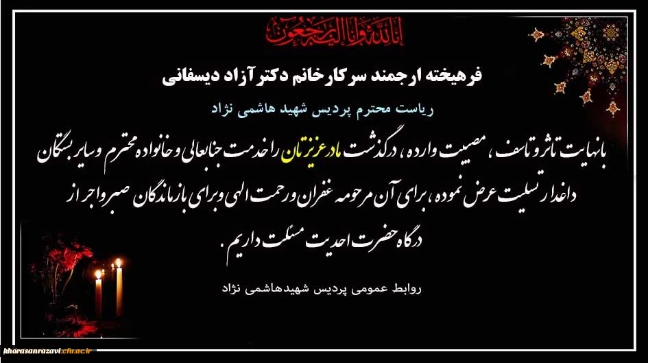 پیام تسلیت به سرکار خانم دکتر آزاد دیسفانی ریاست محترم پردیس شهید هاشمی نژاد 2