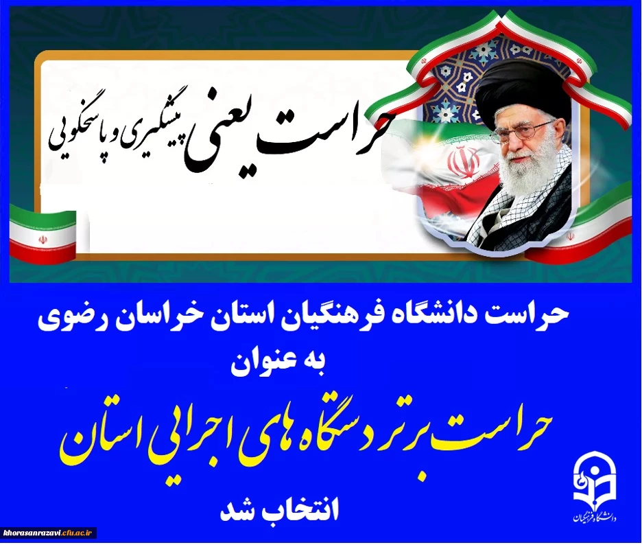 حراست امور پردیس های دانشگاه فرهنگیان استان خراسان رضوی به عنوان حراست برتر دستگاه های اجرایی استان خراسان رضوی انتخاب شد. 2