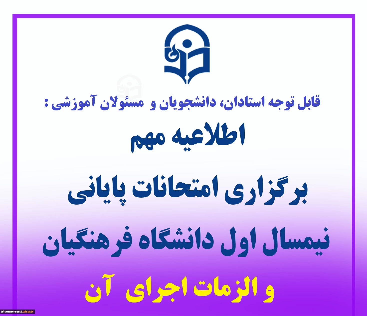امتیاز دهید : اطلاعیه برگزاری امتحانات پایانی نیمسال اول دانشگاه فرهنگیان 2 سهشنبه 23 دی 1404 ساعت 10:50
